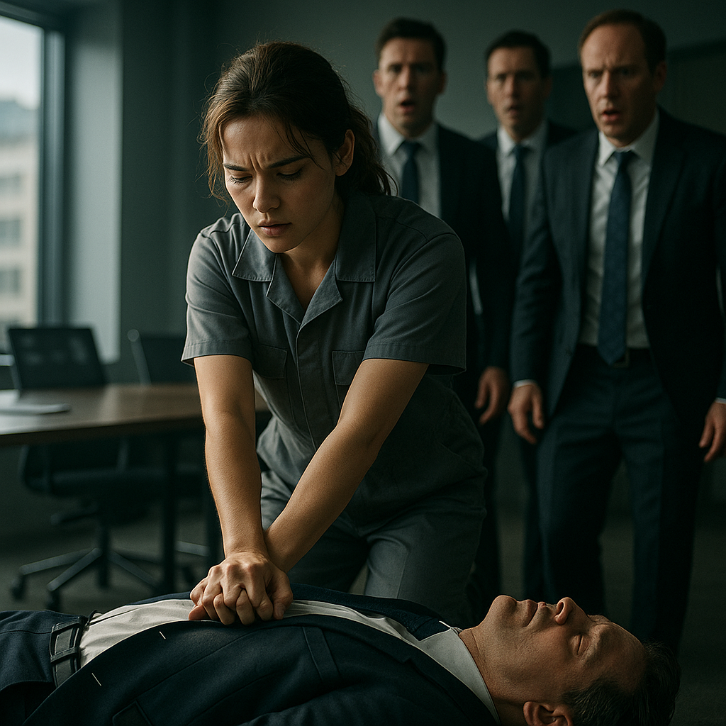 From that day on, Katherina wasn’t just the cleaner who mopped floors before sunrise. She was the woman who had saved a life with nothing but courage, instinct, and a refusal to stand by. And Michael? He never walked through that boardroom the same way again. Every shiny marble tile, every polished table reminded him of the woman who had shown him — and everyone else — the true weight of heroism.